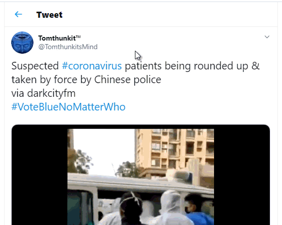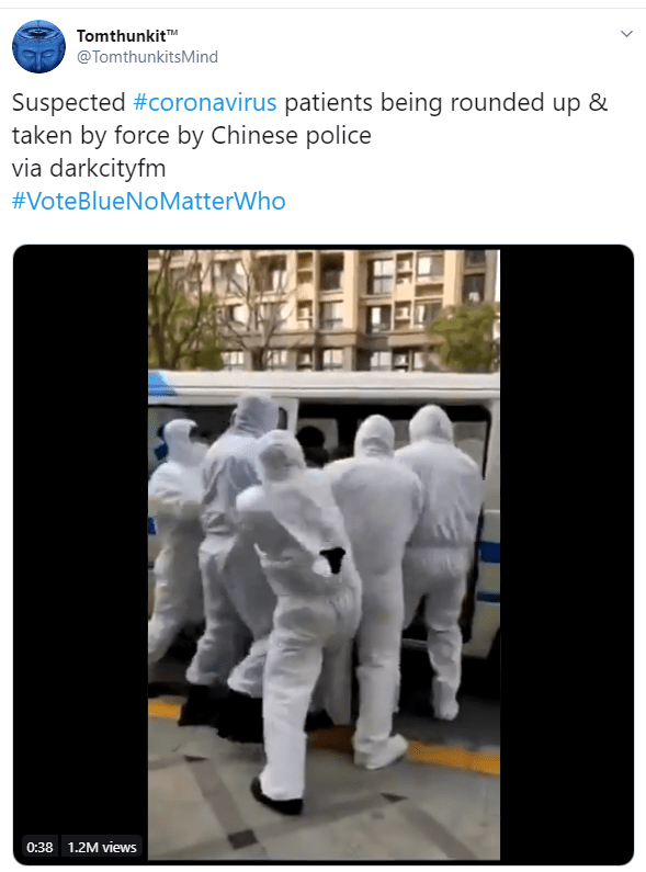 So here’s an example: a video that is captioned as the Chinese government rounding up Covid-19 patients forceably.