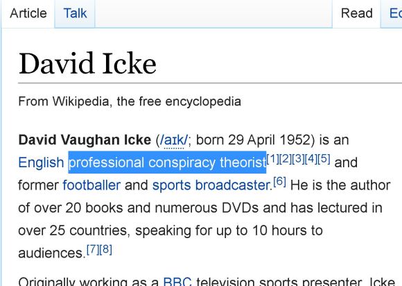 When you do the search, the Wikipedia page should float near the top. Click into the page. Ask yourself, is this the sort of source I thought it was? In this example, we find the site is associated with conspiracy theories. Not what we want!