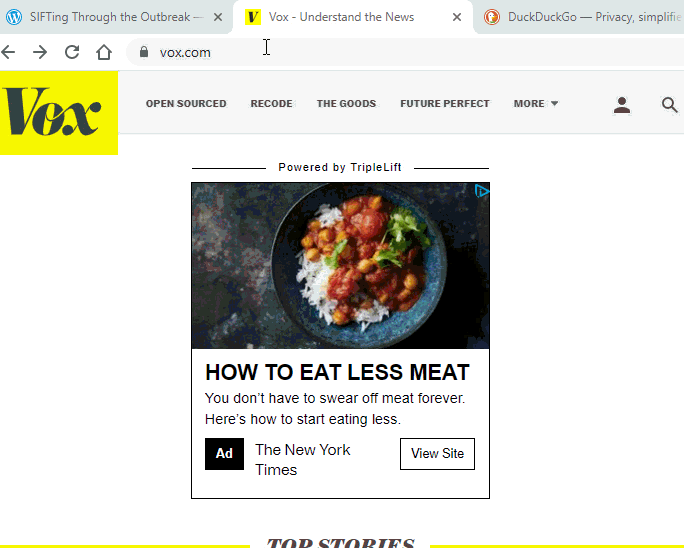 Or you could do the same thing with the site name, like here, though make sure that you read the right article since a lot of publications share names. (We put “publication” in the search to filter out other things that might be named Vox, but again, not magic: just a search!)