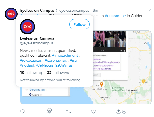 In the future, you can see much of this information on Twitter by simply hovering. This is for another account, but the principle is the same. Just hover and ask “Do I trust this source enough to share w/o additional verification?” (Here, no!)